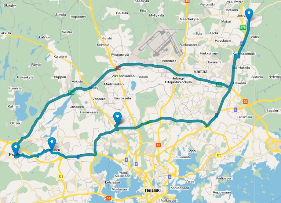 Helsinki (Ruosilankuja 4) - Vantaa - Espoo - Kauniainen